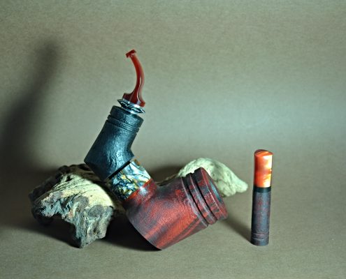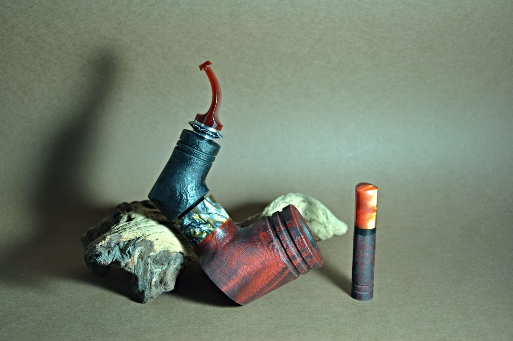 dĺžka: 152mm výška hlavičky: 64mm priemer hlavičky: 45mm hĺbka komory: 33mm hmotnosť: 137g filter: systém RC + 9mm krúžok: Inlace Molten Metal všetky časti fajky sa spájajú cez neodymové magnety